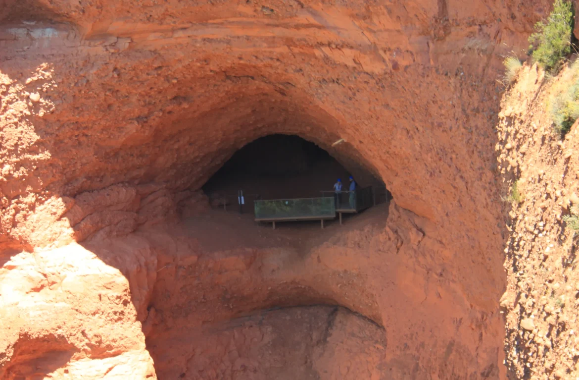 Ese conducto en forma de pasadizo termina en un mirador que está en un corte vertical de la montaña…