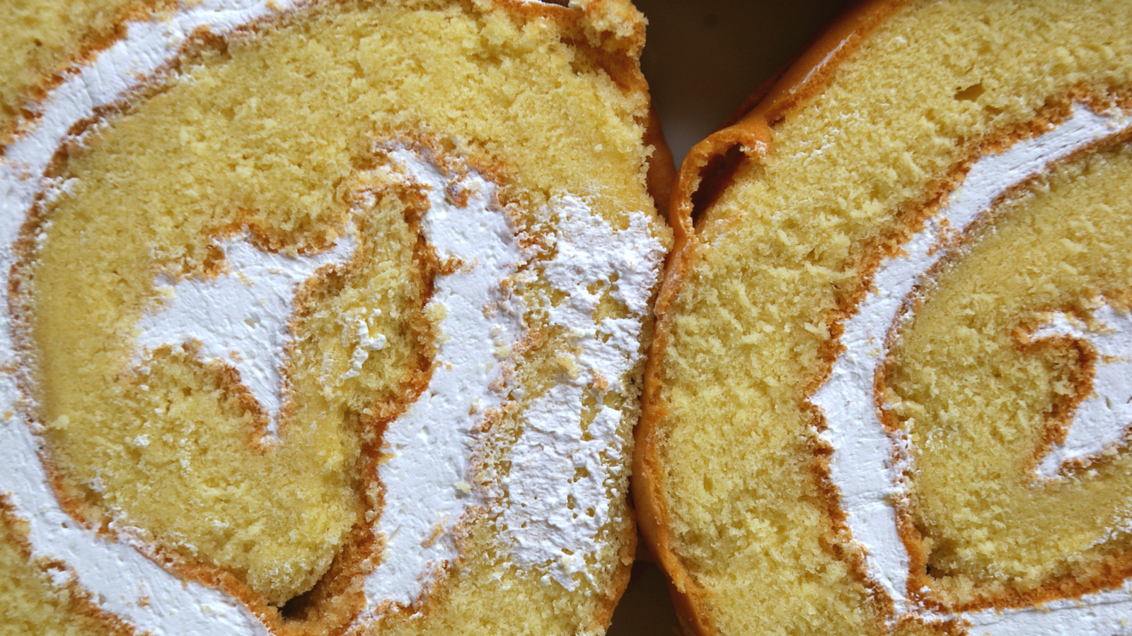 - Vuelca el bizcocho sobre un paño húmedo, retira el papel y rellena con la nata montada.