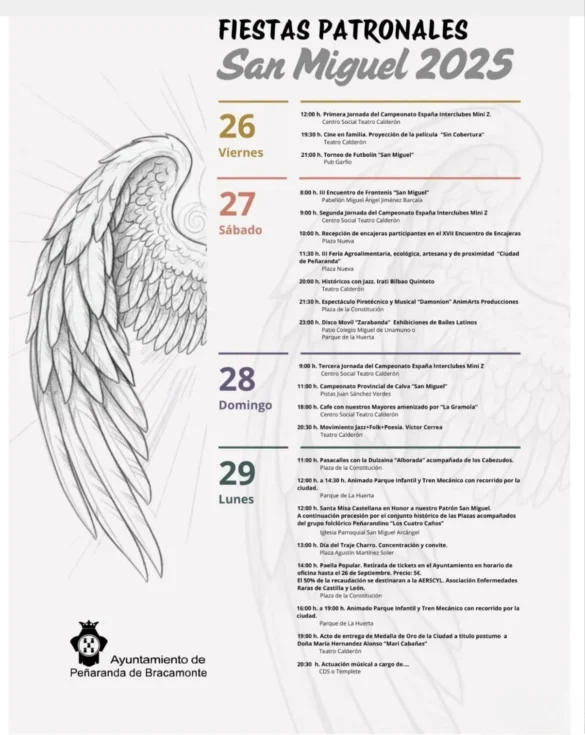 Del viernes 26 al lunes 29 de septiembre, Peñaranda de Bracamonte celebra sus fiestas patronales en honor a San Miguel Arcángel, con actividades para todas las edades, tradición, música, deporte y buen ambiente.